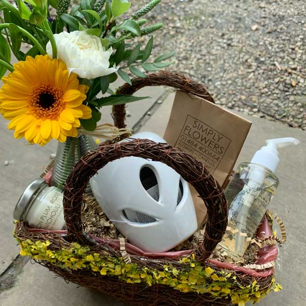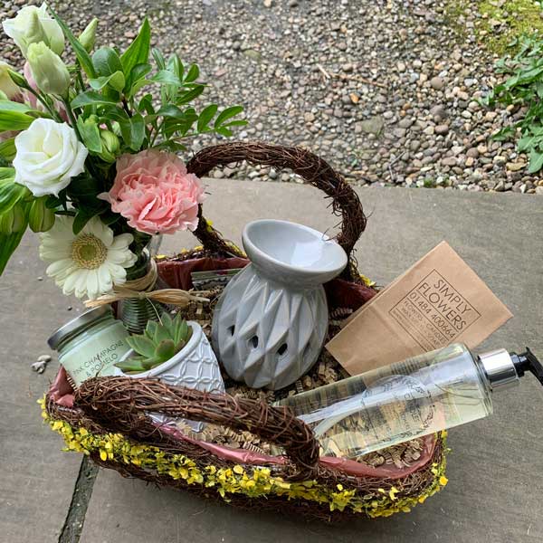 - Standard Basket: £25 The perfect introduction to self-care, this basket features a small bottle of hand wash, 6 wax melts, a medium wax melter, a small candle and a bud vase arrangement.